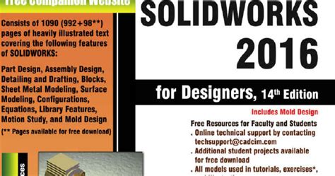 Read Online SOLIDWORKS 2016 for Designers 14th Edition Reader online is a convenient and frugal way to read SOLIDWORKS 2016 for Designers 14th Edition you love right from the comfort of your own home. Yes, there sites where you can get Reader "for free" but the ones listed below are clean from viruses and completely legal to use.